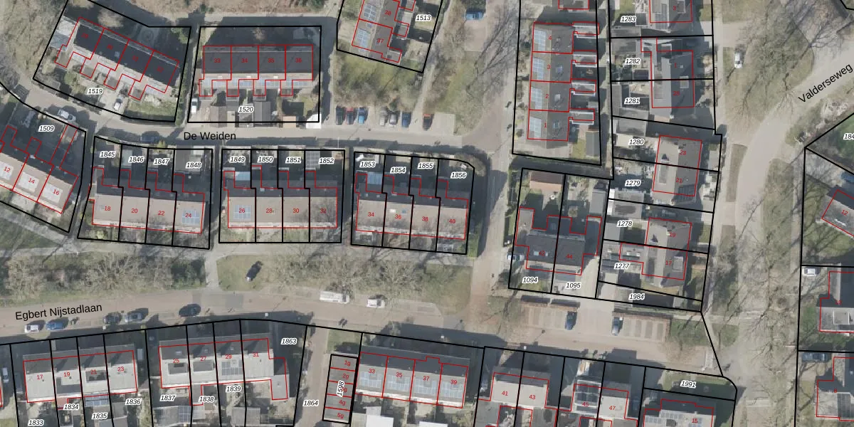 Gebruik de zoekbalk of klik op een perceel voor informatie over de adressen binnen dit perceel.