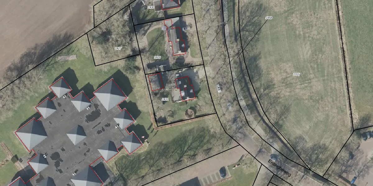 Entingheweg 16 is gelegen op kadastraal perceel DGL00K1431. Deze kadastrale aanduiding is uniek en wordt gebruikt door het Kadaster om eigendomsrechten en andere zakelijke rechten vast te leggen. Het perceel maakt onderdeel uit van de kadastrale gemeente Dwingeloo.