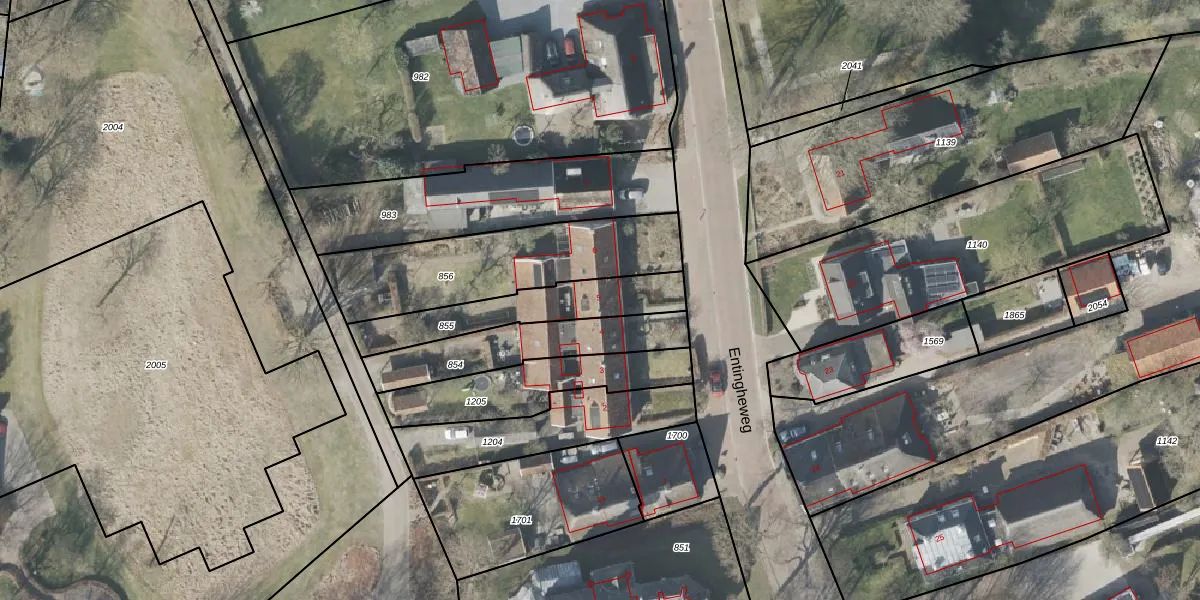 Entingheweg 5 is gelegen op kadastraal perceel DGL00K855. Deze kadastrale aanduiding is uniek en wordt gebruikt door het Kadaster om eigendomsrechten en andere zakelijke rechten vast te leggen. Het perceel maakt onderdeel uit van de kadastrale gemeente Dwingeloo.