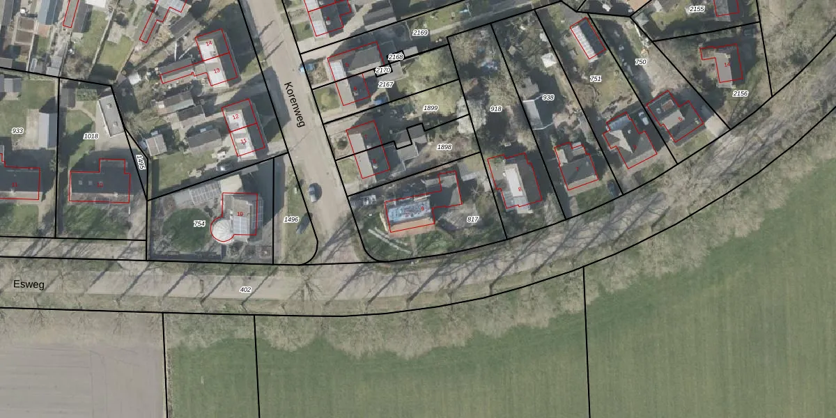 Esweg 9 is gelegen op kadastraal perceel DGL00K817. Deze kadastrale aanduiding is uniek en wordt gebruikt door het Kadaster om eigendomsrechten en andere zakelijke rechten vast te leggen. Het perceel maakt onderdeel uit van de kadastrale gemeente Dwingeloo.
