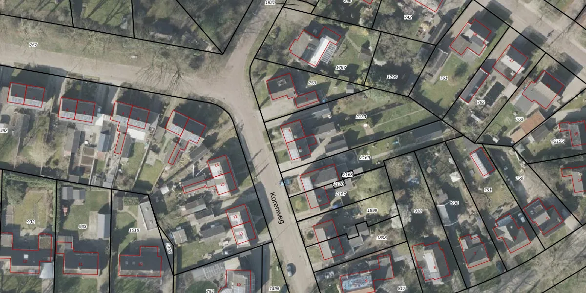 Het perceel waarop Korenweg 4 staat heeft een oppervlakte van 906 m². Dit is een groot perceel. De perceeloppervlakte wordt geregistreerd door het Kadaster. Gedetailleerde informatie over de maten van dit perceel kunt u vinden in het rapport Kadastrale kaart met maatvoering van Korenweg 4.