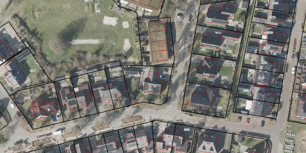 Levimaat 15 is gelegen op kadastraal perceel DGL00M2010. Deze kadastrale aanduiding is uniek en wordt gebruikt door het Kadaster om eigendomsrechten en andere zakelijke rechten vast te leggen. Het perceel maakt onderdeel uit van de kadastrale gemeente Dwingeloo.