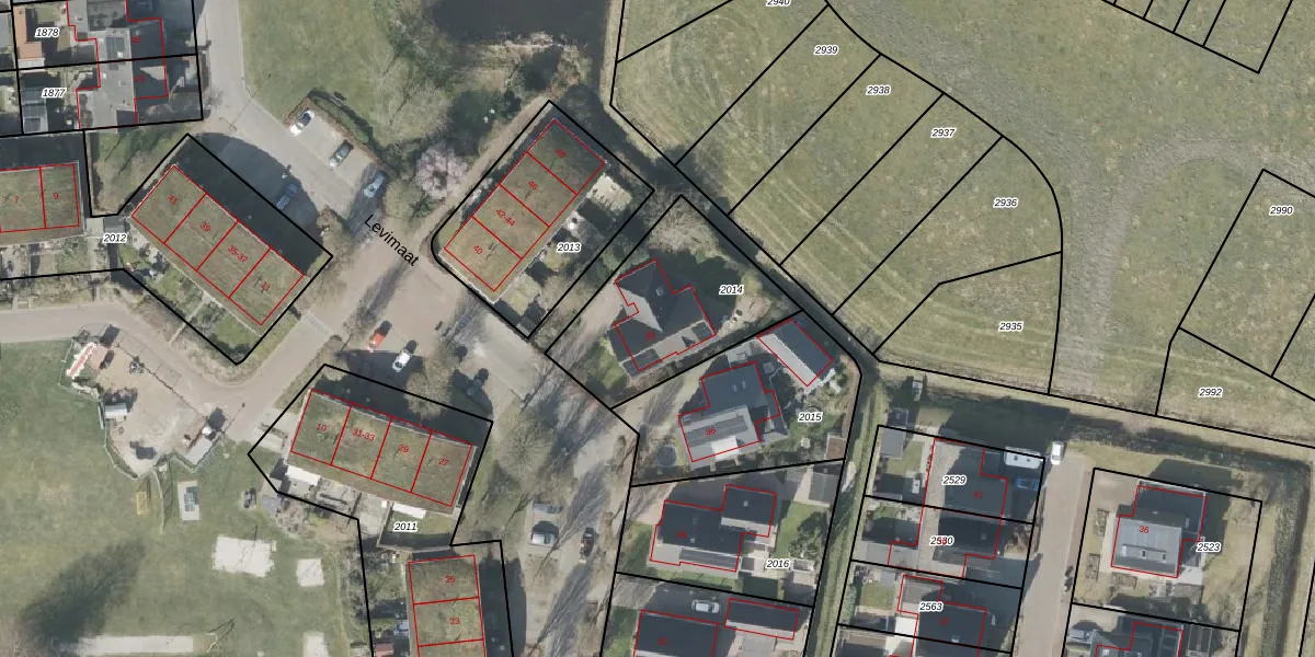 Het perceel waarop Levimaat 38 staat heeft een oppervlakte van 606 m². Dit is een groot perceel. De perceeloppervlakte wordt geregistreerd door het Kadaster. Gedetailleerde informatie over de maten van dit perceel kunt u vinden in het rapport Kadastrale kaart met maatvoering van Levimaat 38.