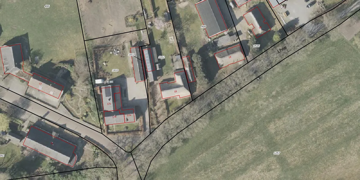 Het perceel waarop Lhee 18 staat heeft een oppervlakte van 1310 m². Dit is een zeer groot perceel. De perceeloppervlakte wordt geregistreerd door het Kadaster. Gedetailleerde informatie over de maten van dit perceel kunt u vinden in het rapport Kadastrale kaart met maatvoering van Lhee 18.