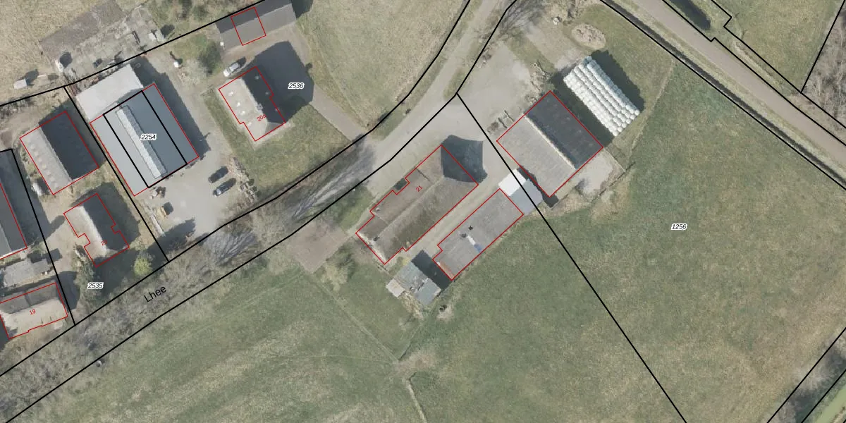 Het perceel waarop Lhee 21 staat heeft een oppervlakte van 1,6 ha. Dit is een zeer groot perceel. De perceeloppervlakte wordt geregistreerd door het Kadaster. Gedetailleerde informatie over de maten van dit perceel kunt u vinden in het rapport Kadastrale kaart met maatvoering van Lhee 21.
