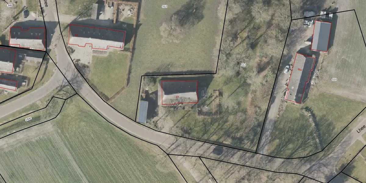 Het perceel waarop Lhee 67 staat heeft een oppervlakte van 4970 m². Dit is een zeer groot perceel. De perceeloppervlakte wordt geregistreerd door het Kadaster. Gedetailleerde informatie over de maten van dit perceel kunt u vinden in het rapport Kadastrale kaart met maatvoering van Lhee 67.