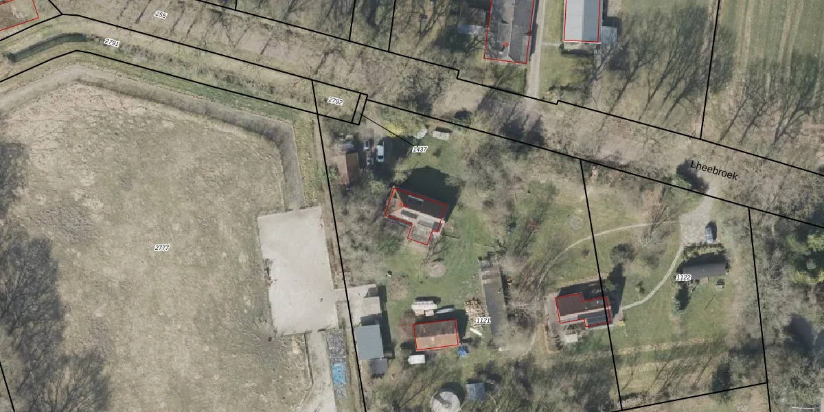 Het perceel waarop Lheebroek 31-a staat heeft een oppervlakte van 4710 m². Dit is een zeer groot perceel. De perceeloppervlakte wordt geregistreerd door het Kadaster. Gedetailleerde informatie over de maten van dit perceel kunt u vinden in het rapport Kadastrale kaart met maatvoering van Lheebroek 31-a.