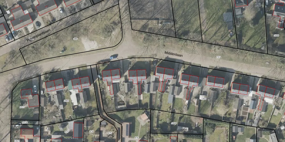 Middenlaan 13 is gelegen op kadastraal perceel DGL00K1493. Deze kadastrale aanduiding is uniek en wordt gebruikt door het Kadaster om eigendomsrechten en andere zakelijke rechten vast te leggen. Het perceel maakt onderdeel uit van de kadastrale gemeente Dwingeloo.