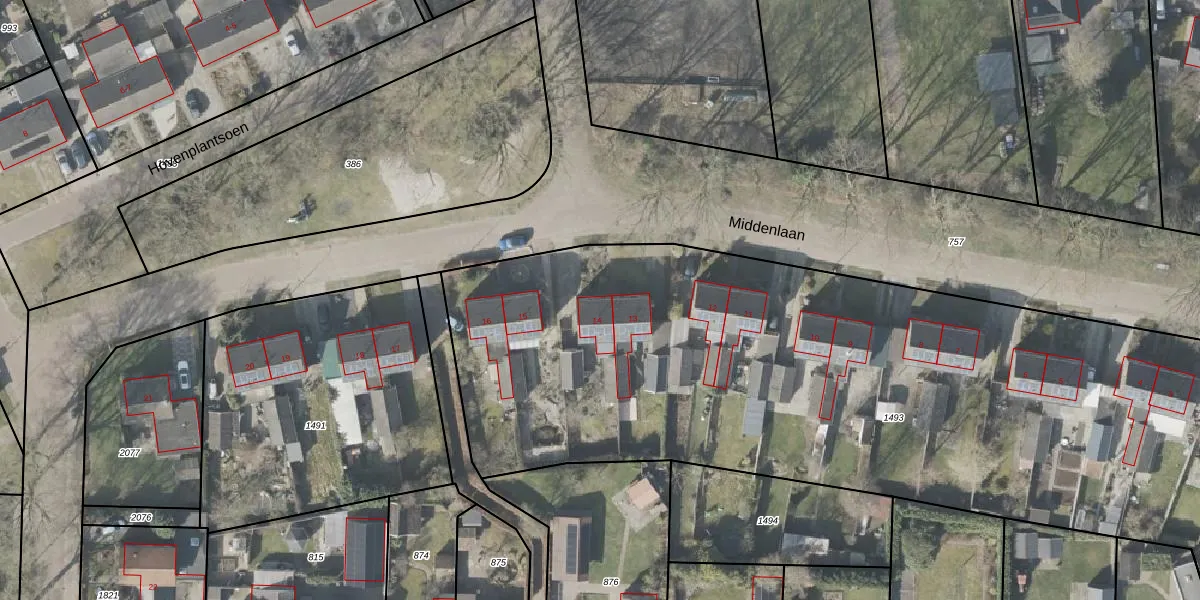 Middenlaan 14 is gelegen op kadastraal perceel DGL00K1493. Deze kadastrale aanduiding is uniek en wordt gebruikt door het Kadaster om eigendomsrechten en andere zakelijke rechten vast te leggen. Het perceel maakt onderdeel uit van de kadastrale gemeente Dwingeloo.