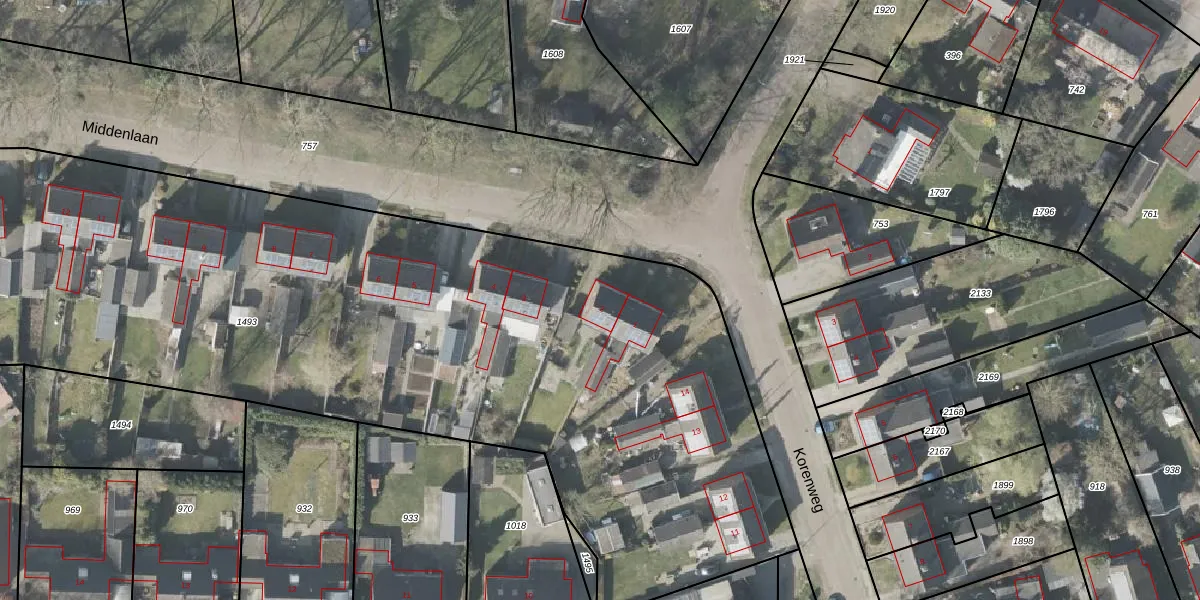 Het perceel waarop Middenlaan 2 staat heeft een oppervlakte van 6130 m². Dit is een zeer groot perceel. De perceeloppervlakte wordt geregistreerd door het Kadaster. Gedetailleerde informatie over de maten van dit perceel kunt u vinden in het rapport Kadastrale kaart met maatvoering van Middenlaan 2.