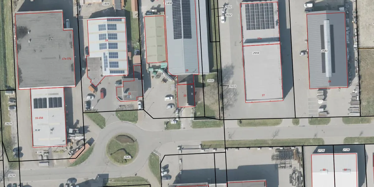 Het perceel waarop Nijverheidsweg 23 staat heeft een oppervlakte van 2240 m². Dit is een zeer groot perceel. De perceeloppervlakte wordt geregistreerd door het Kadaster. Gedetailleerde informatie over de maten van dit perceel kunt u vinden in het rapport Kadastrale kaart met maatvoering van Nijverheidsweg 23.