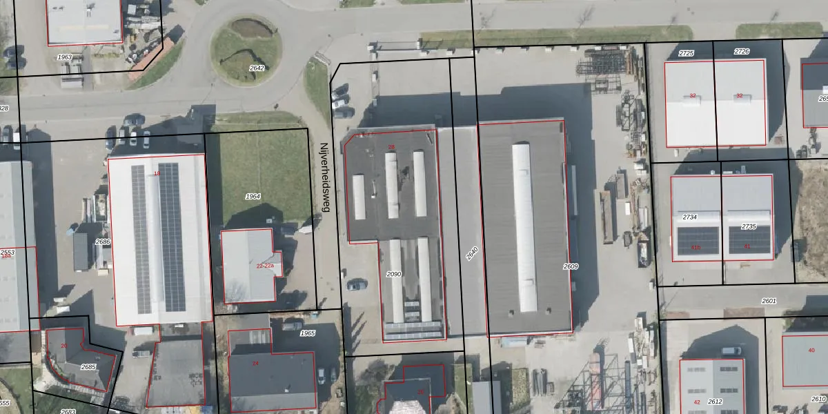 Het perceel waarop Nijverheidsweg 28 staat heeft een oppervlakte van 2051 m². Dit is een zeer groot perceel. De perceeloppervlakte wordt geregistreerd door het Kadaster. Gedetailleerde informatie over de maten van dit perceel kunt u vinden in het rapport Kadastrale kaart met maatvoering van Nijverheidsweg 28.