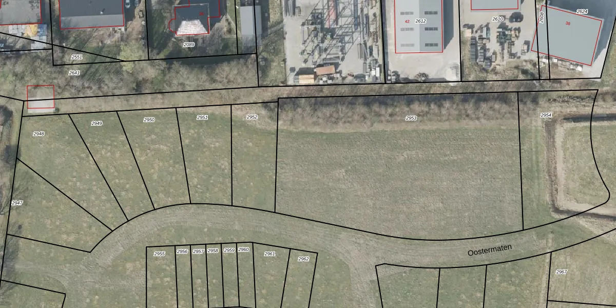 Het perceel waarop Oostermaten 4-19 staat heeft een oppervlakte van 3515 m². Dit is een zeer groot perceel. De perceeloppervlakte wordt geregistreerd door het Kadaster. Gedetailleerde informatie over de maten van dit perceel kunt u vinden in het rapport Kadastrale kaart met maatvoering van Oostermaten 4-19.