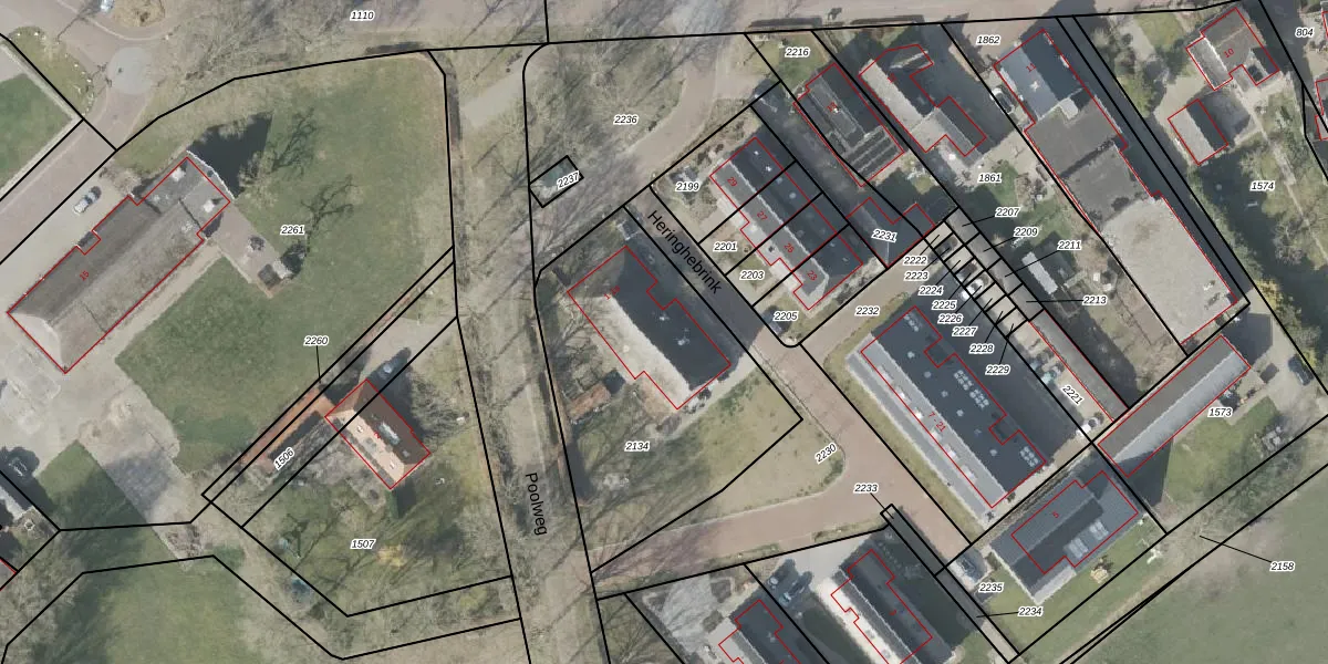 Het perceel waarop Poolweg 1-a staat heeft een oppervlakte van 1215 m². Dit is een zeer groot perceel. De perceeloppervlakte wordt geregistreerd door het Kadaster. Gedetailleerde informatie over de maten van dit perceel kunt u vinden in het rapport Kadastrale kaart met maatvoering van Poolweg 1-a.
