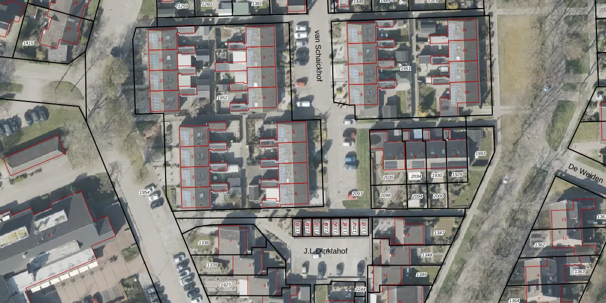 Het perceel waarop van Schaickhof 6 staat heeft een oppervlakte van 3123 m². Dit is een zeer groot perceel. De perceeloppervlakte wordt geregistreerd door het Kadaster. Gedetailleerde informatie over de maten van dit perceel kunt u vinden in het rapport Kadastrale kaart met maatvoering van van Schaickhof 6.