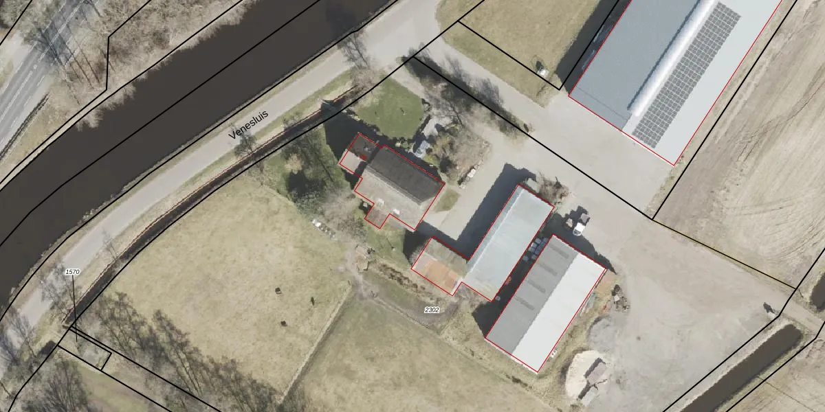 Het perceel waarop Venesluis 28 staat heeft een oppervlakte van 1,1 ha. Dit is een zeer groot perceel. De perceeloppervlakte wordt geregistreerd door het Kadaster. Gedetailleerde informatie over de maten van dit perceel kunt u vinden in het rapport Kadastrale kaart met maatvoering van Venesluis 28.