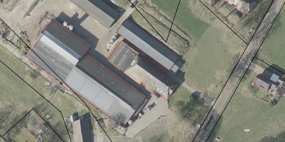 Het perceel waarop Westeinde 9 staat heeft een oppervlakte van 5,0 ha. Dit is een zeer groot perceel. De perceeloppervlakte wordt geregistreerd door het Kadaster. Gedetailleerde informatie over de maten van dit perceel kunt u vinden in het rapport Kadastrale kaart met maatvoering van Westeinde 9.
