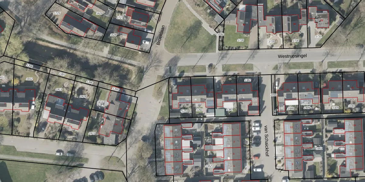 Gebruik de zoekbalk of klik op een perceel voor informatie over de adressen binnen dit perceel.