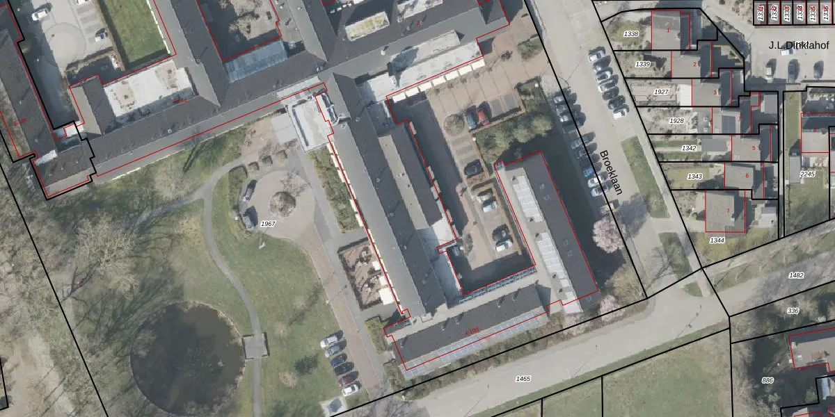 Het adres is gelegen op perceel 1967 in de sectie K en de kadastrale gemeente Dwingeloo. De kadastrale aanduiding is aldus DGL00-K-1967. Het perceel is met 1,8 ha relatief groot. Het gemiddelde ligt in de kadastrale gemeente Dwingeloo op 1,5 ha. De grootste perceeloppervlakte in de kadastrale gemeente is 2,60 km². De kleinste oppervlakte bedraagt 1 m². Op het perceel zijn 68 adressen aanwezig. De laatste wijziging in het de Basisregistratie Kadaster (BRK) was op 26-07-2006.