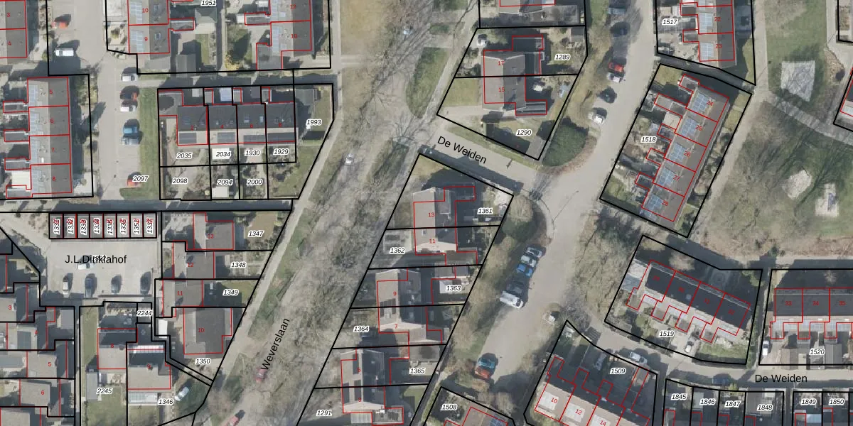 Weverslaan 13 is gelegen op kadastraal perceel DGL00K1361. Deze kadastrale aanduiding is uniek en wordt gebruikt door het Kadaster om eigendomsrechten en andere zakelijke rechten vast te leggen. Het perceel maakt onderdeel uit van de kadastrale gemeente Dwingeloo.
