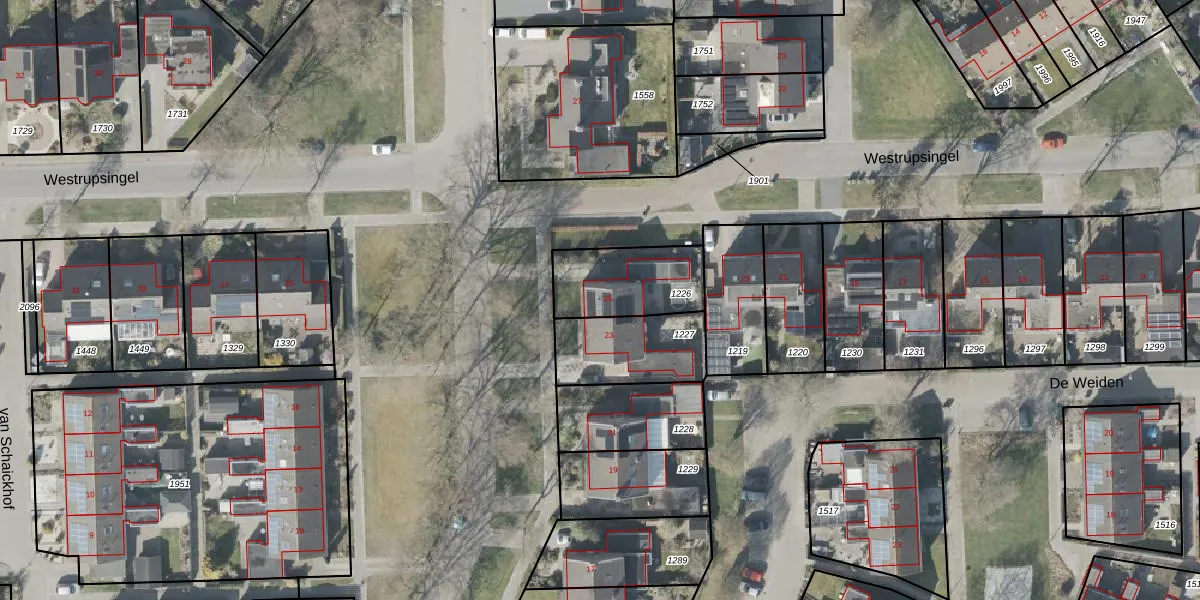 Gebruik de zoekbalk of klik op een perceel voor informatie over de adressen binnen dit perceel.