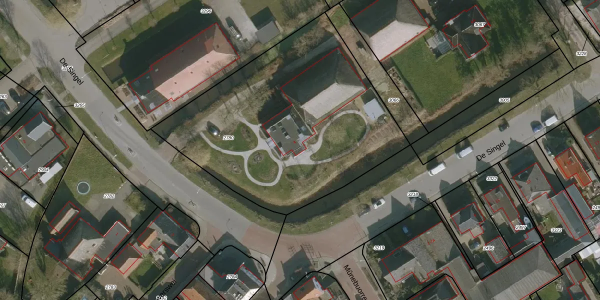 Het perceel waarop De Singel 4 staat heeft een oppervlakte van 3085 m². Dit is een zeer groot perceel. De perceeloppervlakte wordt geregistreerd door het Kadaster. Gedetailleerde informatie over de maten van dit perceel kunt u vinden in het rapport Kadastrale kaart met maatvoering van De Singel 4.