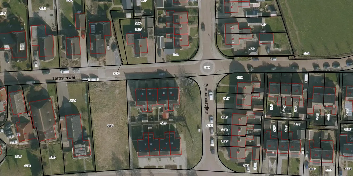 Het perceel waarop Terpsterwei 15 staat heeft een oppervlakte van 2085 m². Dit is een zeer groot perceel. De perceeloppervlakte wordt geregistreerd door het Kadaster. Gedetailleerde informatie over de maten van dit perceel kunt u vinden in het rapport Kadastrale kaart met maatvoering van Terpsterwei 15.
