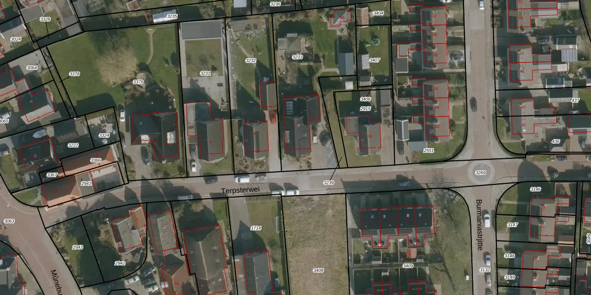 Het perceel waarop Terpsterwei 8 staat heeft een oppervlakte van 1175 m². Dit is een zeer groot perceel. De perceeloppervlakte wordt geregistreerd door het Kadaster. Gedetailleerde informatie over de maten van dit perceel kunt u vinden in het rapport Kadastrale kaart met maatvoering van Terpsterwei 8.