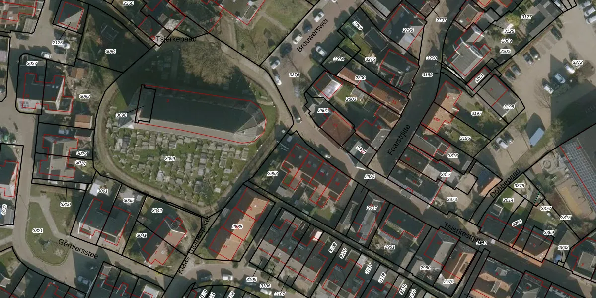 Het perceel waarop Tsjerkestrjitte 24 staat heeft een oppervlakte van 608 m². Dit is een groot perceel. De perceeloppervlakte wordt geregistreerd door het Kadaster. Gedetailleerde informatie over de maten van dit perceel kunt u vinden in het rapport Kadastrale kaart met maatvoering van Tsjerkestrjitte 24.