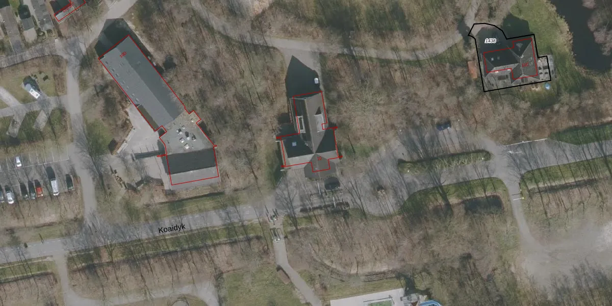 Het perceel waarop Koaidyk 10 staat heeft een oppervlakte van 25,1 ha. Dit is een zeer groot perceel. De perceeloppervlakte wordt geregistreerd door het Kadaster. Gedetailleerde informatie over de maten van dit perceel kunt u vinden in het rapport Kadastrale kaart met maatvoering van Koaidyk 10.