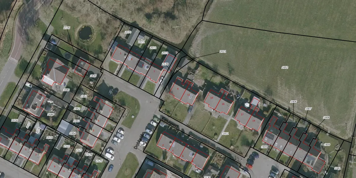 Het perceel waarop Eeskwert 9 staat heeft een oppervlakte van 1964 m². Dit is een zeer groot perceel. De perceeloppervlakte wordt geregistreerd door het Kadaster. Gedetailleerde informatie over de maten van dit perceel kunt u vinden in het rapport Kadastrale kaart met maatvoering van Eeskwert 9.