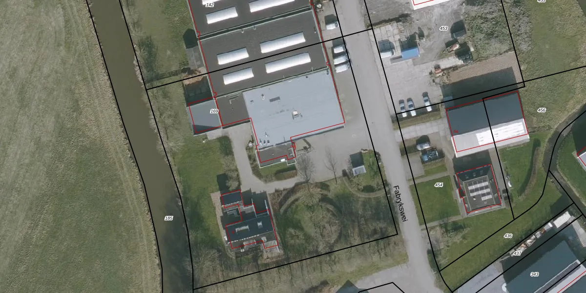 Het perceel waarop Fabrykswei 9-a staat heeft een oppervlakte van 4840 m². Dit is een zeer groot perceel. De perceeloppervlakte wordt geregistreerd door het Kadaster. Gedetailleerde informatie over de maten van dit perceel kunt u vinden in het rapport Kadastrale kaart met maatvoering van Fabrykswei 9-a.