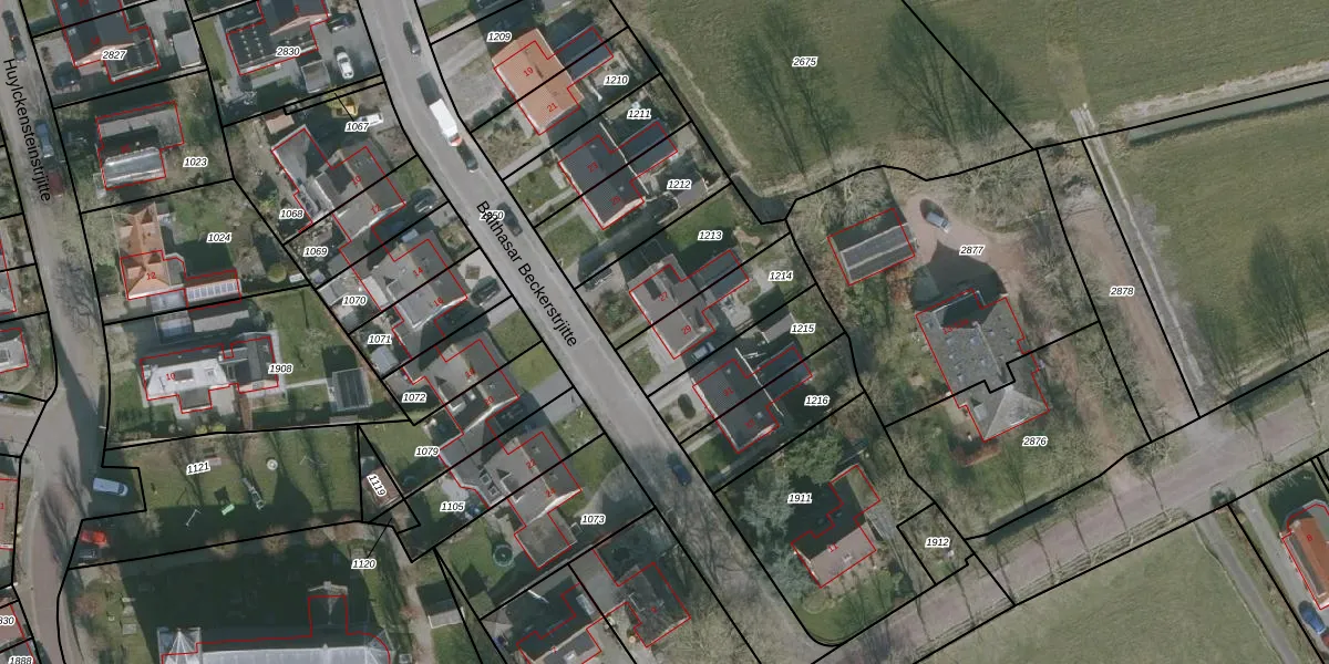 Gebruik de zoekbalk of klik op een perceel voor informatie over de adressen binnen dit perceel.