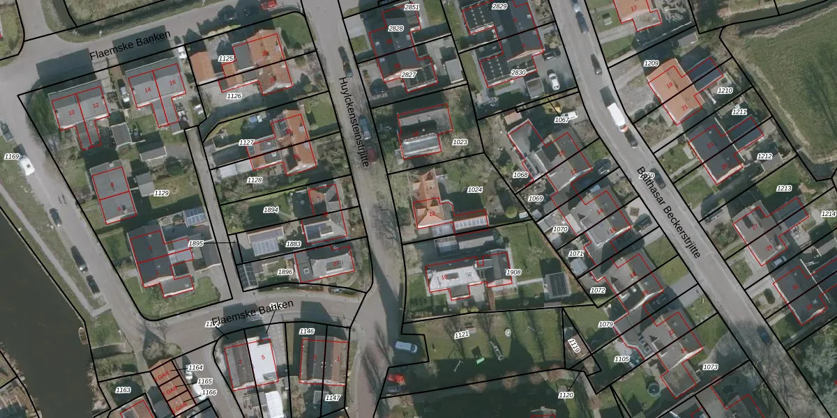 Gebruik de zoekbalk of klik op een perceel voor informatie over de adressen binnen dit perceel.