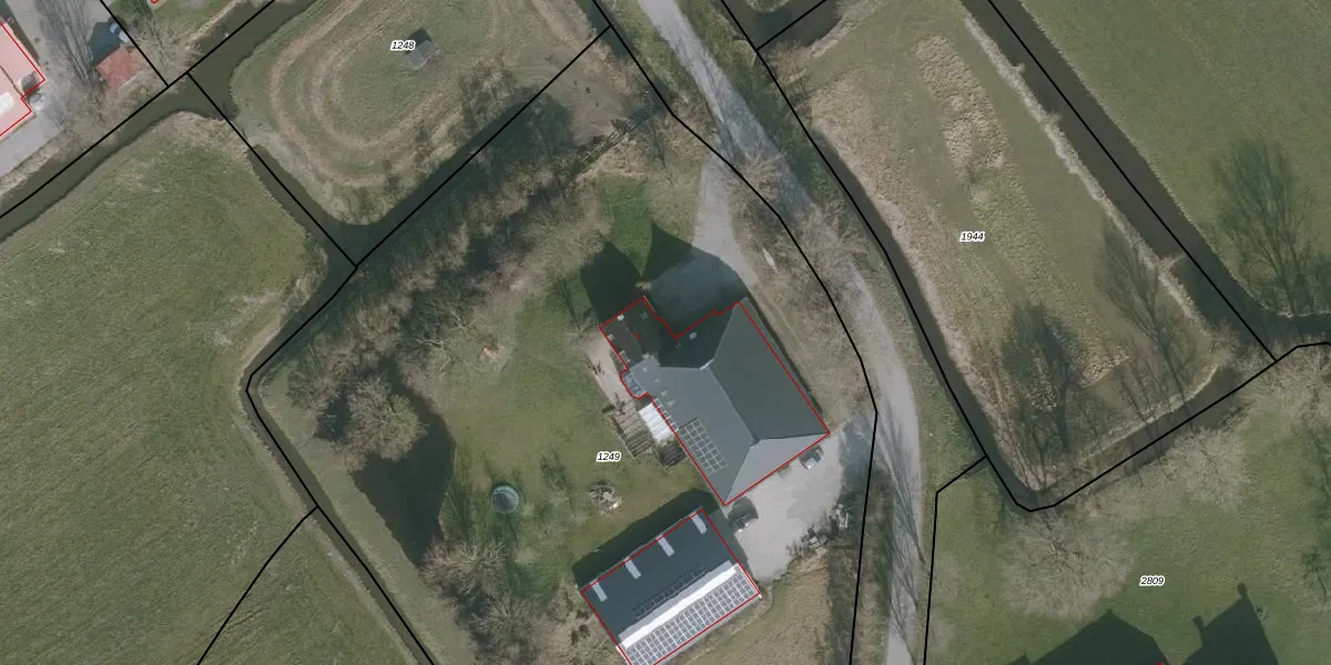 Het adres is gelegen op perceel 1249 in de sectie F en de kadastrale gemeente Jorwerd. De kadastrale aanduiding is aldus JWD00-F-1249. De gemiddelde perceelgrootte in Jorwerd is 1,1 ha. Dit perceel is kleiner: de perceeloppervlakte bedraagt 7630 m². De grootste perceeloppervlakte in de kadastrale gemeente is 11,8 ha. De kleinste oppervlakte bedraagt 1 m². Dit is het enige adres dat aanwezig is op het perceel. De huidige grenzen van het perceel zijn digitaal in de Basisregistratie Kadaster (BRK) geregistreerd op 15-01-2018.