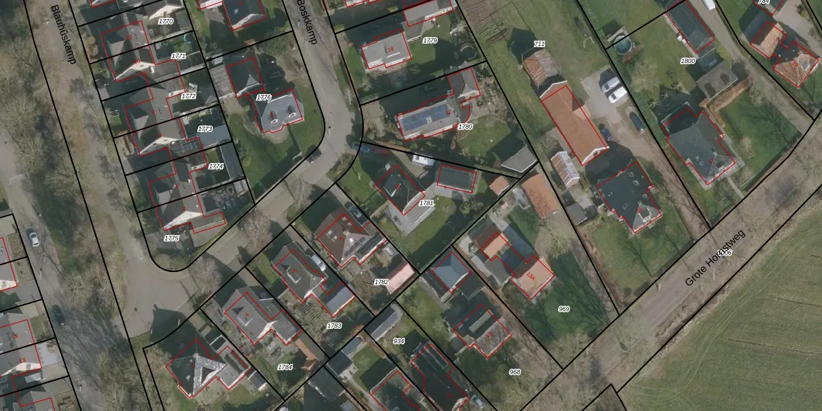 Het perceel waarop Boskkamp 10 staat heeft een oppervlakte van 726 m². Dit is een groot perceel. De perceeloppervlakte wordt geregistreerd door het Kadaster. Gedetailleerde informatie over de maten van dit perceel kunt u vinden in het rapport Kadastrale kaart met maatvoering van Boskkamp 10.