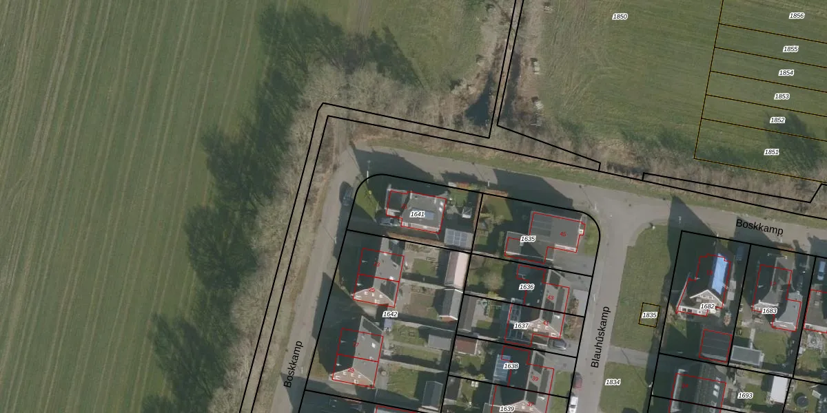 Het perceel waarop Boskkamp 21 staat heeft een oppervlakte van 440 m². Dit is een groot perceel. De perceeloppervlakte wordt geregistreerd door het Kadaster. Gedetailleerde informatie over de maten van dit perceel kunt u vinden in het rapport Kadastrale kaart met maatvoering van Boskkamp 21.