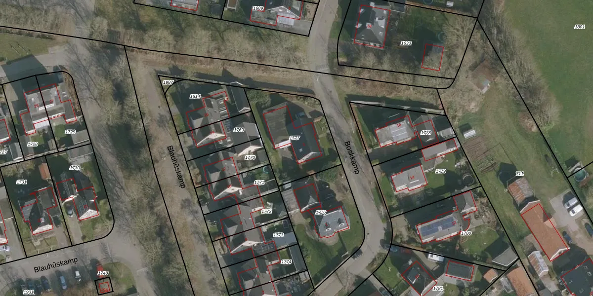 Het perceel waarop Boskkamp 3 staat heeft een oppervlakte van 672 m². Dit is een groot perceel. De perceeloppervlakte wordt geregistreerd door het Kadaster. Gedetailleerde informatie over de maten van dit perceel kunt u vinden in het rapport Kadastrale kaart met maatvoering van Boskkamp 3.