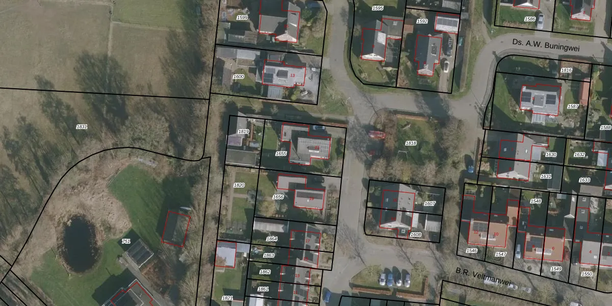 Het perceel waarop B.R. Veltmanwei 21 staat heeft een oppervlakte van 436 m². Dit is een groot perceel. De perceeloppervlakte wordt geregistreerd door het Kadaster. Gedetailleerde informatie over de maten van dit perceel kunt u vinden in het rapport Kadastrale kaart met maatvoering van B.R. Veltmanwei 21.
