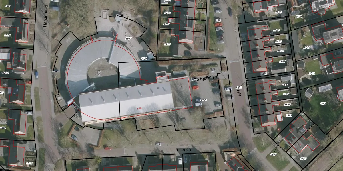 Het perceel waarop De Kjellingen 1 staat heeft een oppervlakte van 2250 m². Dit is een zeer groot perceel. De perceeloppervlakte wordt geregistreerd door het Kadaster. Gedetailleerde informatie over de maten van dit perceel kunt u vinden in het rapport Kadastrale kaart met maatvoering van De Kjellingen 1.