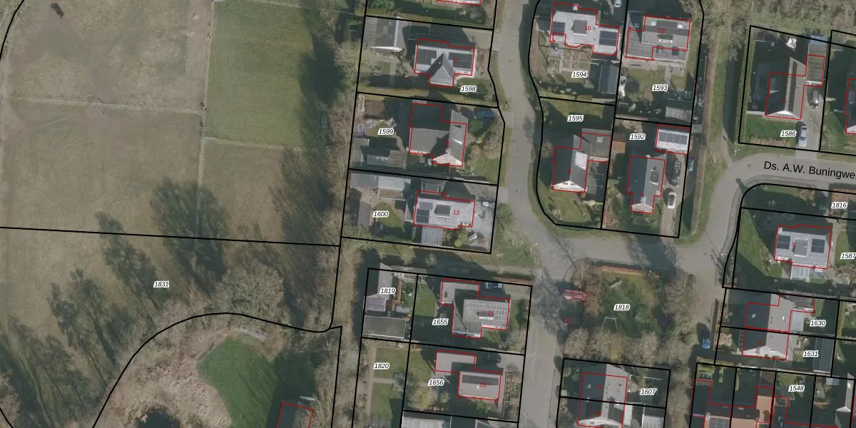 Ds. A.W. Buningwei 13 is gelegen op kadastraal perceel OTM00A1600. Deze kadastrale aanduiding is uniek en wordt gebruikt door het Kadaster om eigendomsrechten en andere zakelijke rechten vast te leggen. Het perceel maakt onderdeel uit van de kadastrale gemeente Oostermeer.
