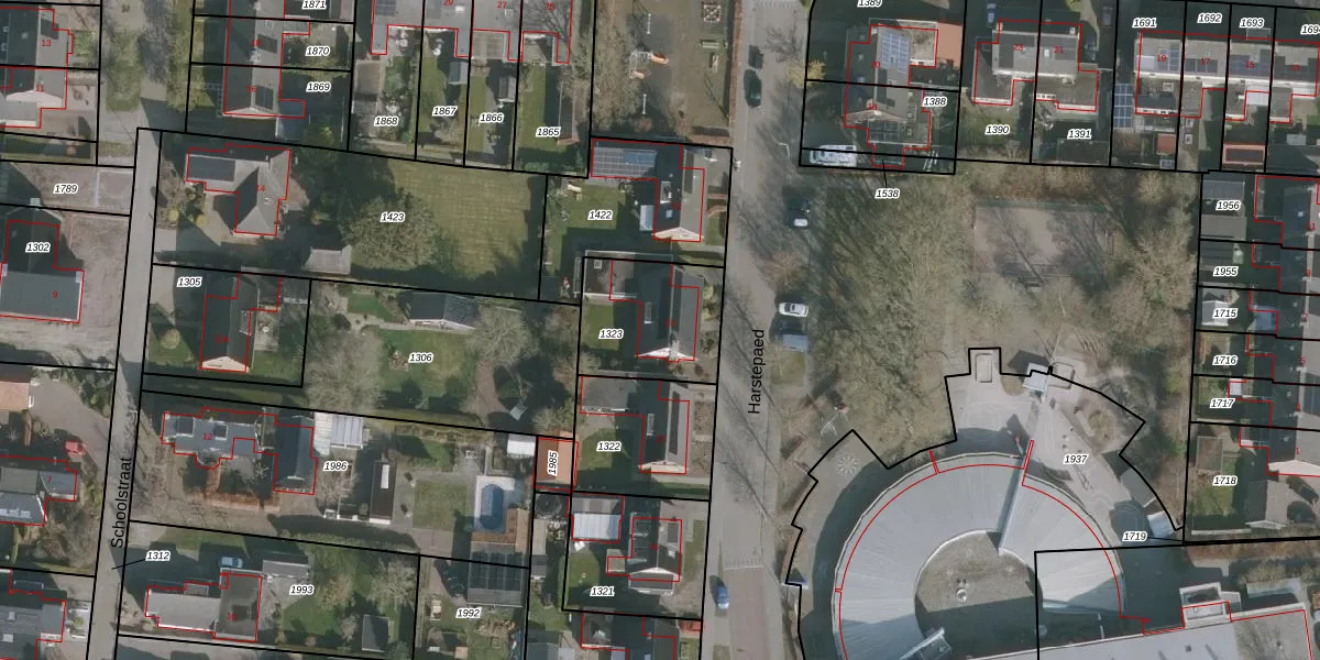 Het perceel waarop Harstepaed 19 staat heeft een oppervlakte van 382 m². Dit is een groot perceel. De perceeloppervlakte wordt geregistreerd door het Kadaster. Gedetailleerde informatie over de maten van dit perceel kunt u vinden in het rapport Kadastrale kaart met maatvoering van Harstepaed 19.
