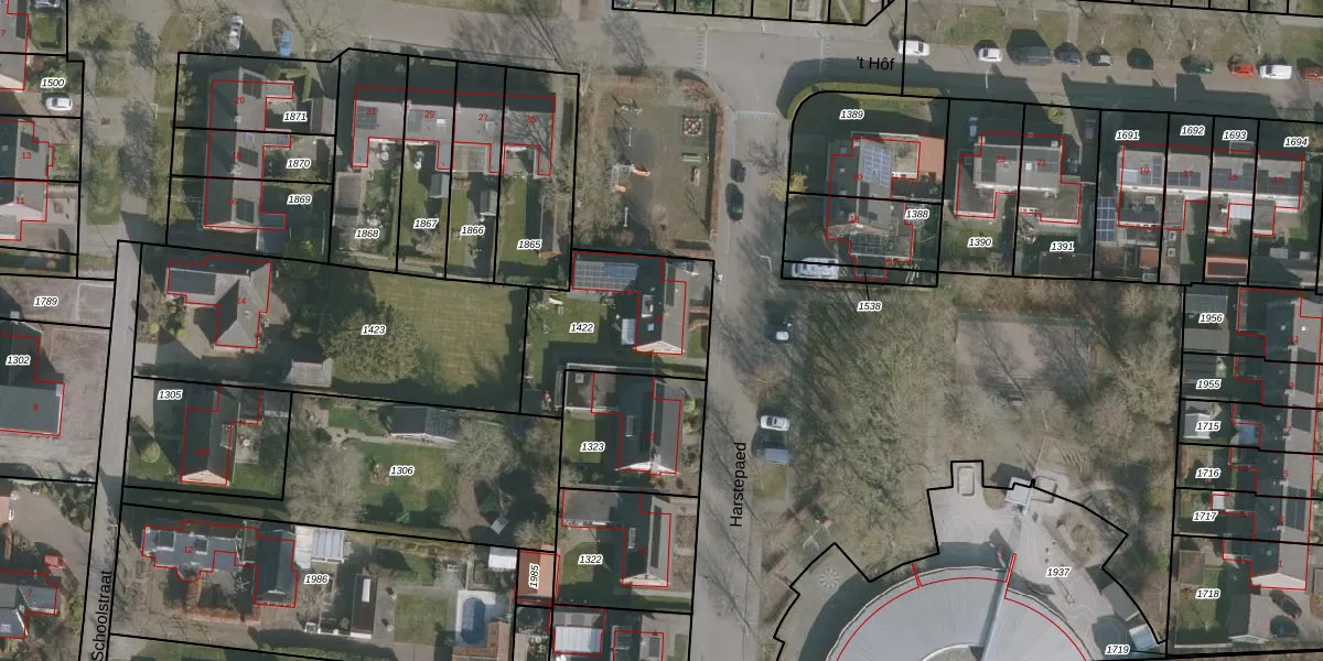 Het perceel waarop Harstepaed 21 staat heeft een oppervlakte van 510 m². Dit is een groot perceel. De perceeloppervlakte wordt geregistreerd door het Kadaster. Gedetailleerde informatie over de maten van dit perceel kunt u vinden in het rapport Kadastrale kaart met maatvoering van Harstepaed 21.
