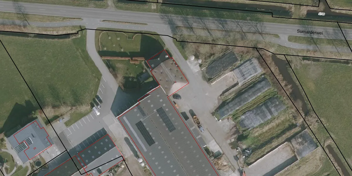 Het perceel waarop Sumarderwei 2 staat heeft een oppervlakte van 5,0 ha. Dit is een zeer groot perceel. De perceeloppervlakte wordt geregistreerd door het Kadaster. Gedetailleerde informatie over de maten van dit perceel kunt u vinden in het rapport Kadastrale kaart met maatvoering van Sumarderwei 2.