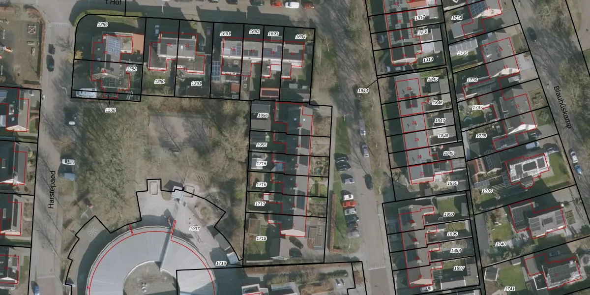 Gebruik de zoekbalk of klik op een perceel voor informatie over de adressen binnen dit perceel.