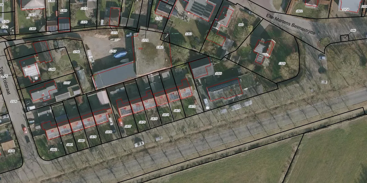 Gebruik de zoekbalk of klik op een perceel voor informatie over de adressen binnen dit perceel.