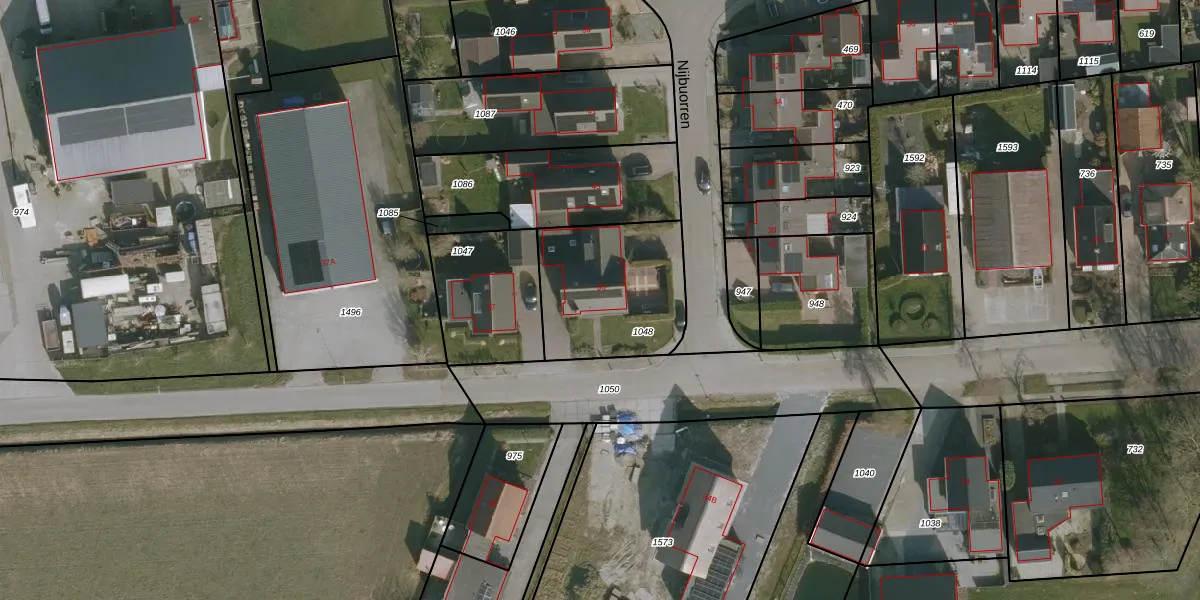 Het perceel waarop het adres ligt is NKK02-D-1048. De afkorting 'NKK02' staat voor kadastrale gemeente Nijkerk Friesland. Het perceel is 527 m² groot. Dat is kleiner dan de gemiddelde perceeloppervlakte in Nijkerk Friesland, dat op 7895,8 m² ligt. De grootste perceeloppervlakte in de kadastrale gemeente is 1,19 km². De kleinste oppervlakte bedraagt 0 m². Op het perceel liggen in totaal 2 adressen. De huidige grenzen van het perceel zijn digitaal in de Basisregistratie Kadaster (BRK) geregistreerd op 09-01-2007.