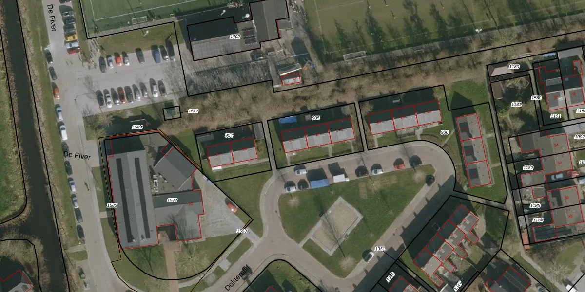 Het perceel waarop Doktersfiif 19 staat heeft een oppervlakte van 510 m². Dit is een groot perceel. De perceeloppervlakte wordt geregistreerd door het Kadaster. Gedetailleerde informatie over de maten van dit perceel kunt u vinden in het rapport Kadastrale kaart met maatvoering van Doktersfiif 19.