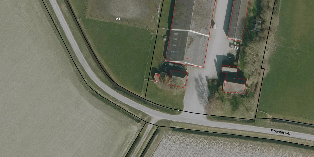 Het perceel waarop Ropsterwei 16-T staat heeft een oppervlakte van 8630 m². Dit is een zeer groot perceel. De perceeloppervlakte wordt geregistreerd door het Kadaster. Gedetailleerde informatie over de maten van dit perceel kunt u vinden in het rapport Kadastrale kaart met maatvoering van Ropsterwei 16-T.