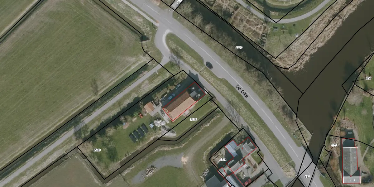 Het perceel waarop De Dille 2 staat heeft een oppervlakte van 1570 m². Dit is een zeer groot perceel. De perceeloppervlakte wordt geregistreerd door het Kadaster. Gedetailleerde informatie over de maten van dit perceel kunt u vinden in het rapport Kadastrale kaart met maatvoering van De Dille 2.